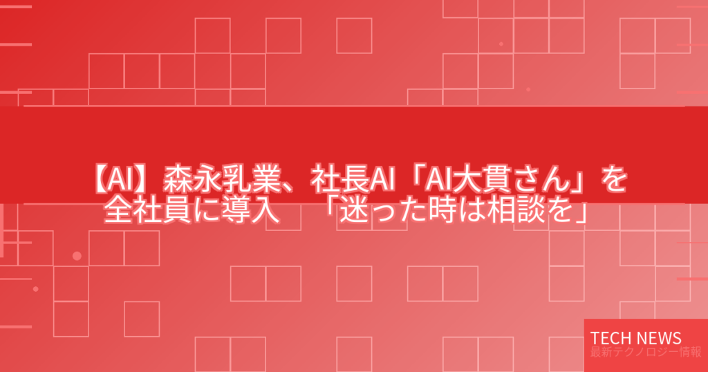 【AI】森永乳業、社長AI「AI大貫さん」を全社員に導入 「迷った時は相談を」