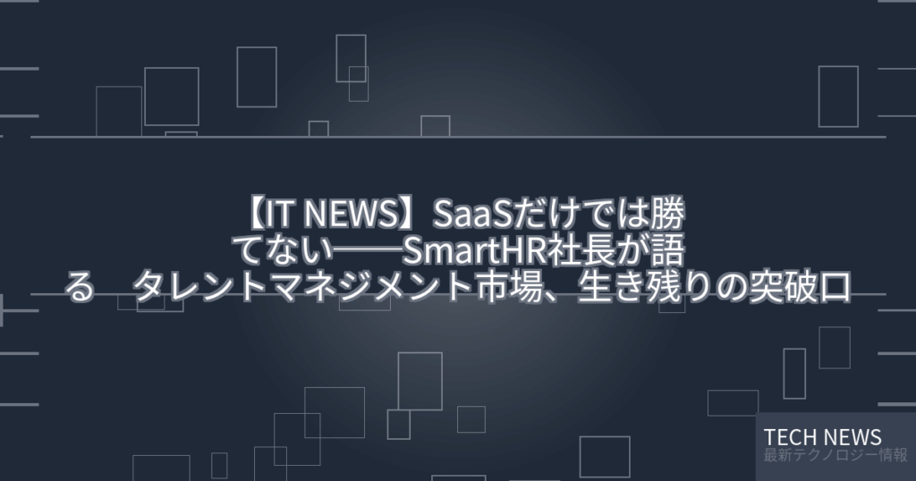 【IT NEWS】SaaSだけでは勝てない──SmartHR社長が語る タレントマネジメント市場、生き残りの突破口