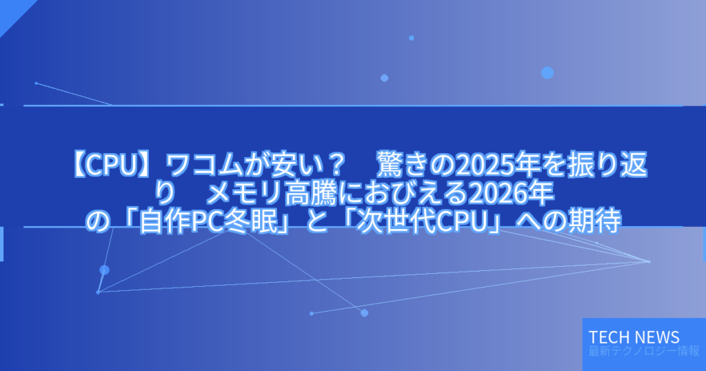 【CPU】ワコムが安い? 驚きの2025年を振り返り メモリ高騰におびえる2026年の「自作PC冬眠」と「次世代CPU」への期待