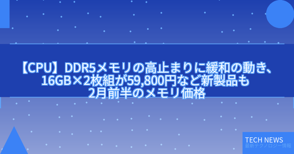 【CPU】DDR5メモリの高止まりに緩和の動き、16GB×2枚組が59,800円など新製品も 2月前半のメモリ価格