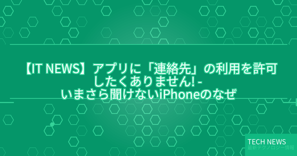 【IT NEWS】アプリに「連絡先」の利用を許可したくありません! – いまさら聞けないiPhoneのなぜ