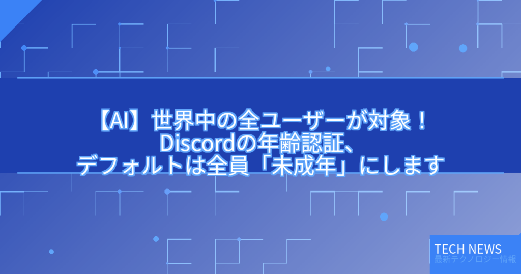 【AI】世界中の全ユーザーが対象! Discordの年齢認証、デフォルトは全員「未成年」にします