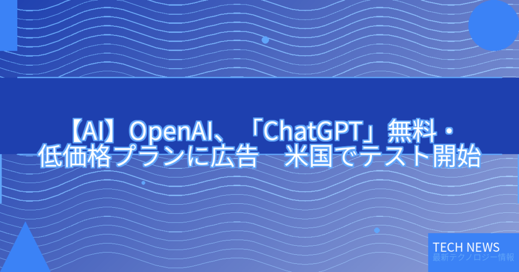 【AI】OpenAI、「ChatGPT」無料・低価格プランに広告 米国でテスト開始