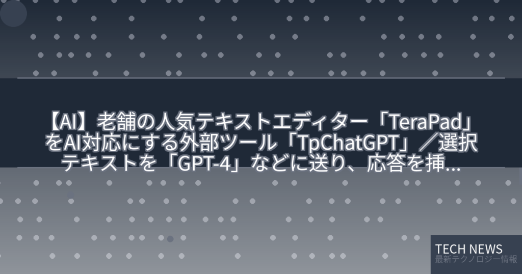 【AI】老舗の人気テキストエディター「TeraPad」をAI対応にする外部ツール「TpChatGPT」/選択テキストを「GPT-4」などに送り、応答を挿入レビュー