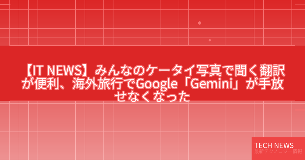 【IT NEWS】みんなのケータイ写真で聞く翻訳が便利、海外旅行でGoogle「Gemini」が手放せなくなった