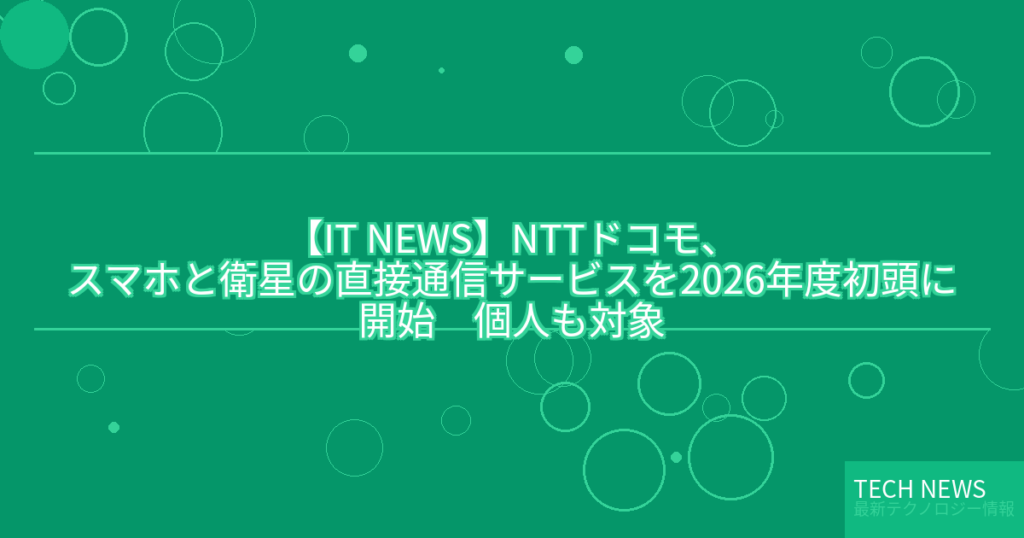 【IT NEWS】NTTドコモ、スマホと衛星の直接通信サービスを2026年度初頭に開始 個人も対象
