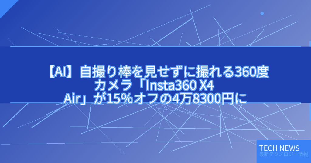 【AI】自撮り棒を見せずに撮れる360度カメラ「Insta360 X4 Air」が15%オフの4万8300円に