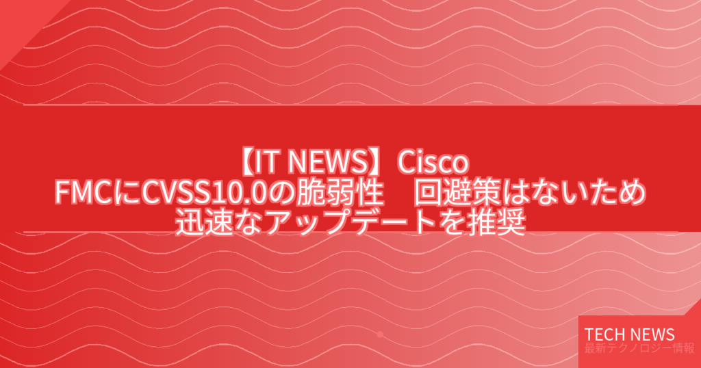 【IT NEWS】Cisco FMCにCVSS10.0の脆弱性 回避策はないため迅速なアップデートを推奨