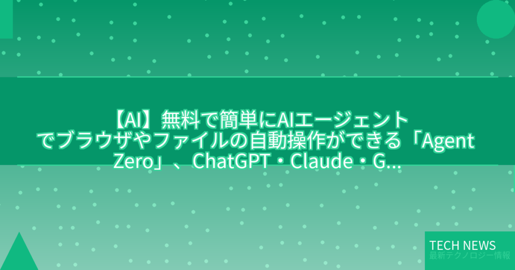 ユーザーの指示に応じてOSをツールとして使い、情報収集やコード実行、他エージェントとの協調などを通じてタスク達成を目指すオープンソースのパーソナルAIエージェントフレームワーク「Agent Zero」が公開されています。 -