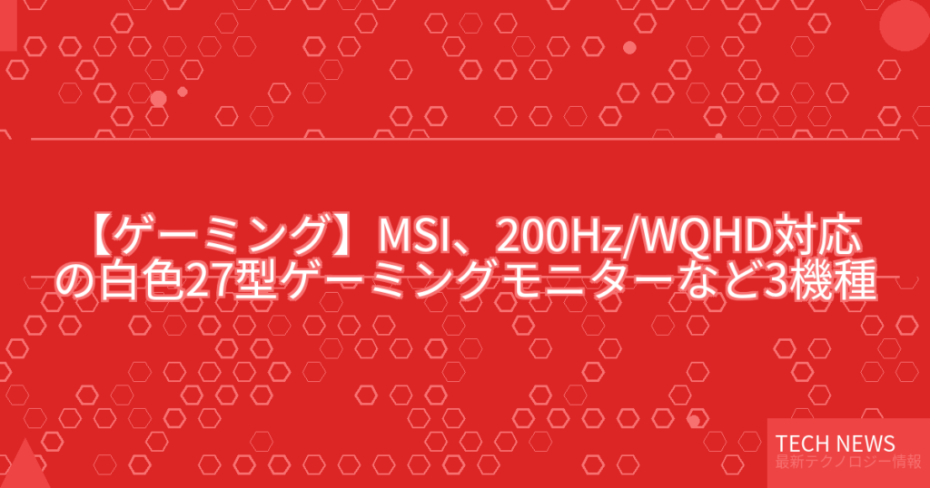 【ゲーミング】MSI、200Hz/WQHD対応の白色27型ゲーミングモニターなど3機種