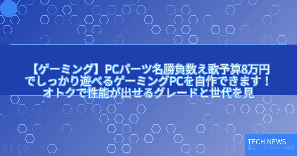ウィー! どうも芹澤正芳です。「PCパーツ名勝負数え歌」の第16戦は“8万円以内のゲーミングPC自作”だ。ノーロープ有刺鉄線電流爆破デスマッチばりのムチャな条件のように思える。人気ゲームがしっかり遊べる性能を確保しようと思ったらなおさらだ。 -