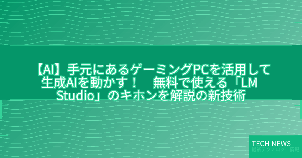 【AI】手元にあるゲーミングPCを活用して生成AIを動かす! 無料で使える「LM Studio」のキホンを解説の新技術