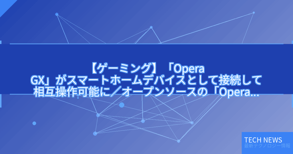 【ゲーミング】「Opera GX」がスマートホームデバイスとして接続して相互操作可能に/オープンソースの「Opera GX Smart Home」を提供開始