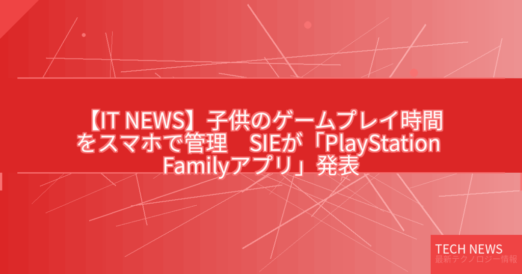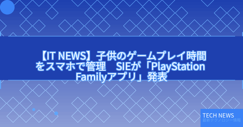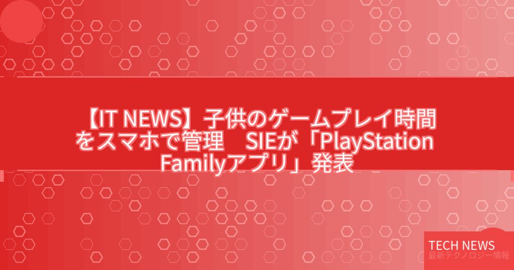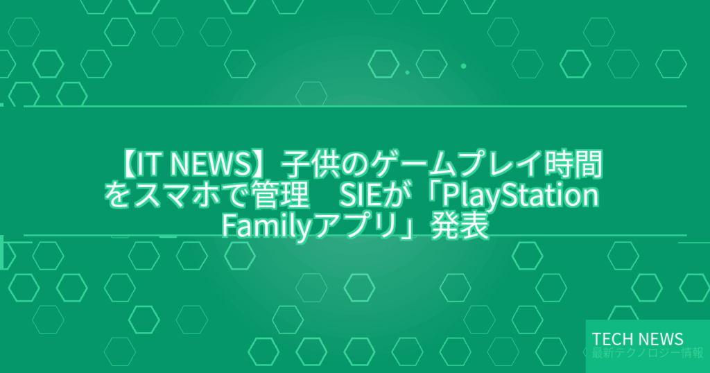 【IT NEWS】子供のゲームプレイ時間をスマホで管理 SIEが「PlayStation Familyアプリ」発表