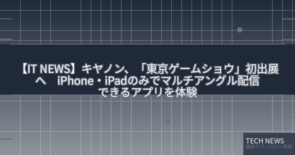 【IT NEWS】キヤノン、「東京ゲームショウ」初出展へ iPhone・iPadのみでマルチアングル配信できるアプリを体験