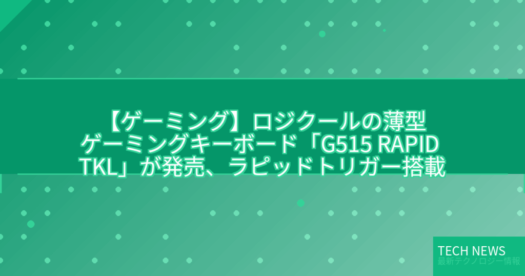 【ゲーミング】ロジクールの薄型ゲーミングキーボード「G515 RAPID TKL」が発売、ラピッドトリガー搭載