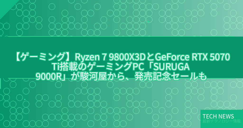 【ゲーミング】Ryzen 7 9800X3DとGeForce RTX 5070 Ti搭載のゲーミングPC「SURUGA 9000R」が駿河屋から、発売記念セールも