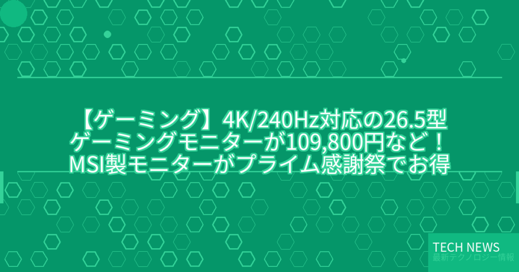 【ゲーミング】4K/240Hz対応の26.5型ゲーミングモニターが109,800円など!MSI製モニターがプライム感謝祭でお得