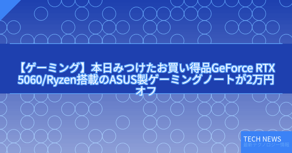【ゲーミング】本日みつけたお買い得品GeForce RTX 5060/Ryzen搭載のASUS製ゲーミングノートが2万円オフ