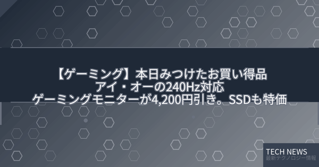 【ゲーミング】本日みつけたお買い得品アイ・オーの240Hz対応ゲーミングモニターが4,200円引き。SSDも特価