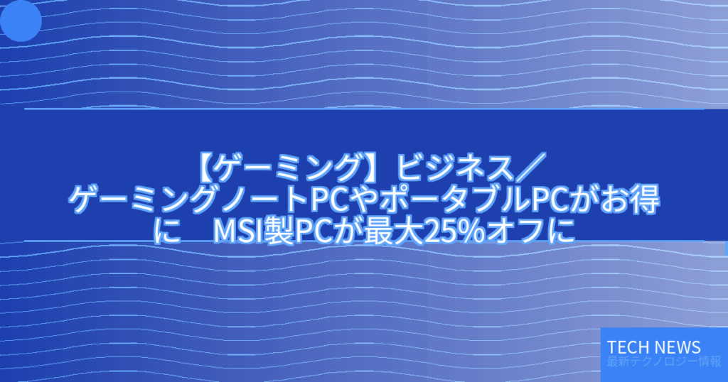 【ゲーミング】ビジネス/ゲーミングノートPCやポータブルPCがお得に MSI製PCが最大25%オフに
