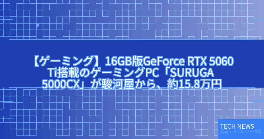 【ゲーミング】16GB版GeForce RTX 5060 Ti搭載のゲーミングPC「SURUGA 5000CX」が駿河屋から、約15.8万円