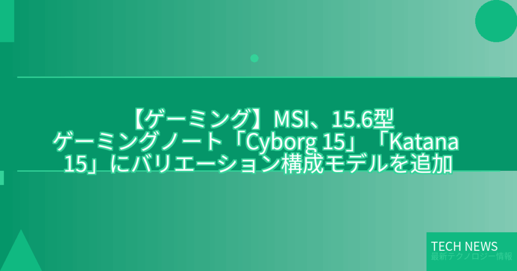 【ゲーミング】MSI、15.6型ゲーミングノート「Cyborg 15」「Katana 15」にバリエーション構成モデルを追加