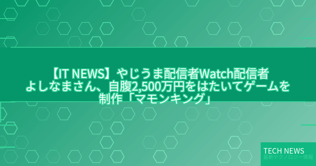 【IT NEWS】やじうま配信者Watch配信者よしなまさん、自腹2,500万円をはたいてゲームを制作「マモンキング」