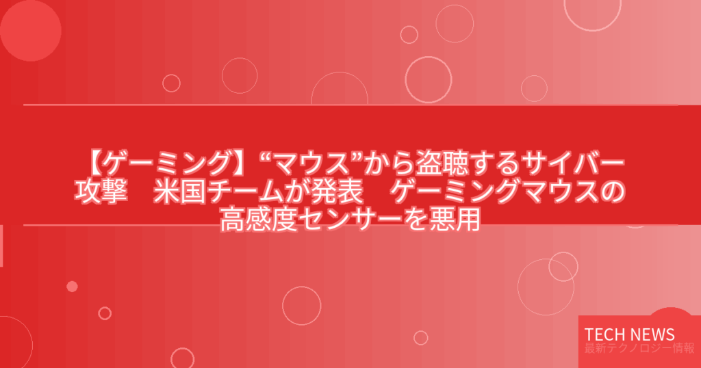 【ゲーミング】“マウス”から盗聴するサイバー攻撃 米国チームが発表 ゲーミングマウスの高感度センサーを悪用