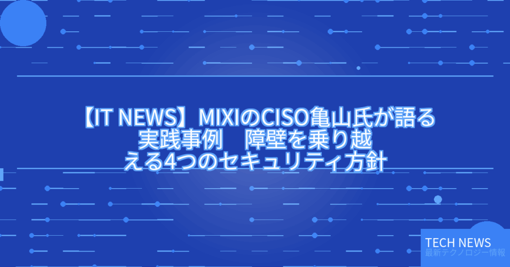 【IT NEWS】MIXIのCISO亀山氏が語る実践事例 障壁を乗り越える4つのセキュリティ方針