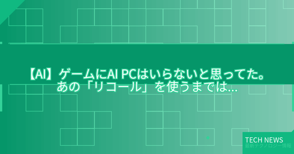 【AI】ゲームにAI PCはいらないと思ってた。あの「リコール」を使うまでは…
