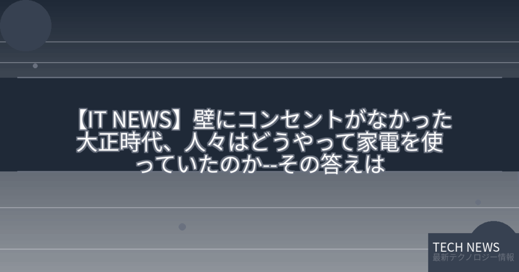 【IT NEWS】壁にコンセントがなかった大正時代、人々はどうやって家電を使っていたのか–その答えは