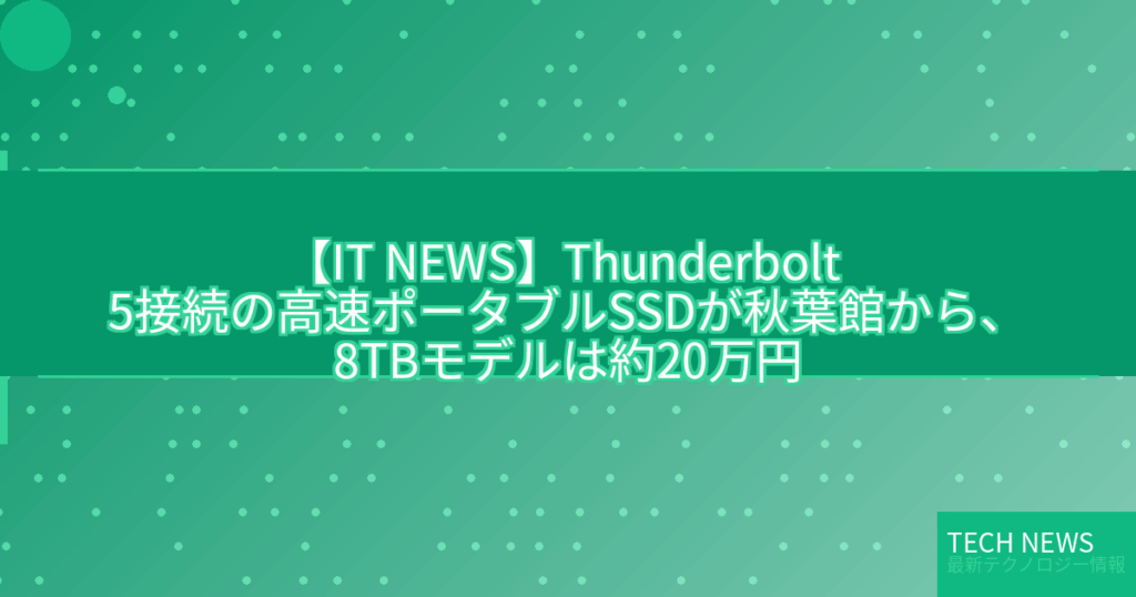 【IT NEWS】Thunderbolt 5接続の高速ポータブルSSDが秋葉館から、8TBモデルは約20万円