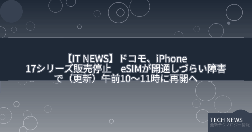 【IT NEWS】ドコモ、iPhone 17シリーズ販売停止 eSIMが開通しづらい障害で(更新)午前10〜11時に再開へ