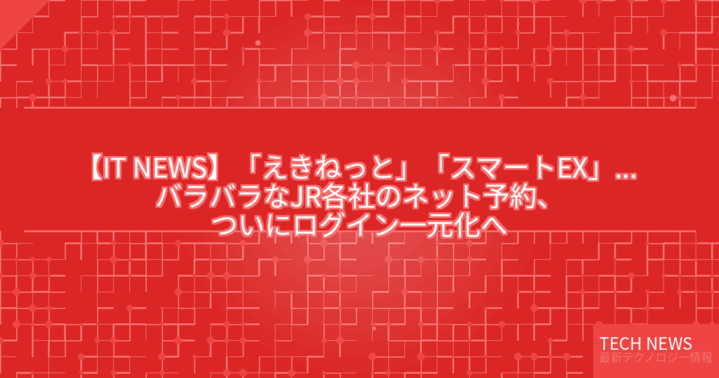 【IT NEWS】「えきねっと」「スマートEX」… バラバラなJR各社のネット予約、ついにログイン一元化へ
