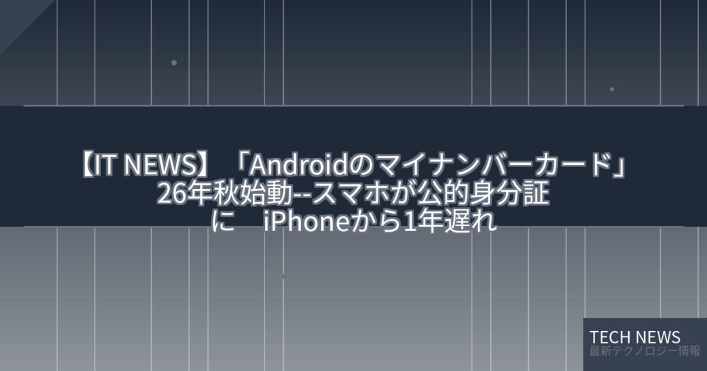 【IT NEWS】「Androidのマイナンバーカード」26年秋始動–スマホが公的身分証に iPhoneから1年遅れ