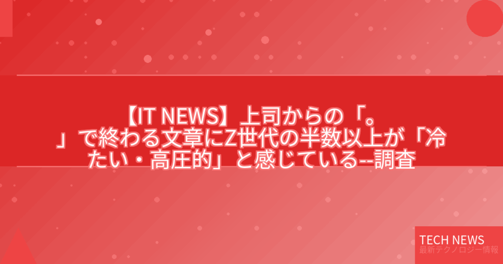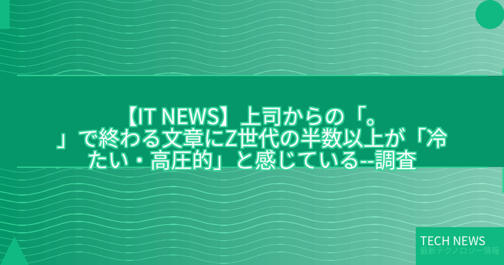 【IT NEWS】上司からの「。」で終わる文章にZ世代の半数以上が「冷たい・高圧的」と感じている–調査