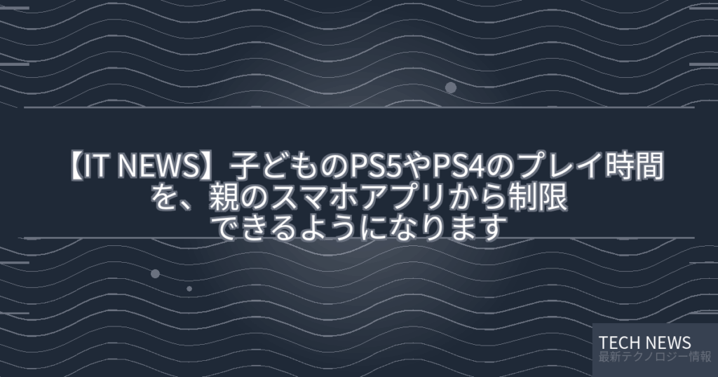 【IT NEWS】子どものPS5やPS4のプレイ時間を、親のスマホアプリから制限できるようになります