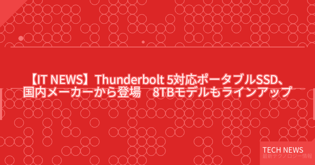 【IT NEWS】Thunderbolt 5対応ポータブルSSD、国内メーカーから登場 8TBモデルもラインアップ