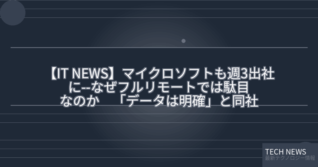 【IT NEWS】マイクロソフトも週3出社に–なぜフルリモートでは駄目なのか 「データは明確」と同社