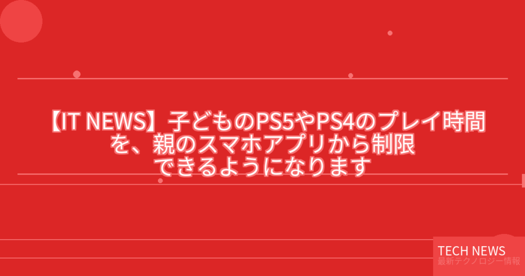 【IT NEWS】子どものPS5やPS4のプレイ時間を、親のスマホアプリから制限できるようになります