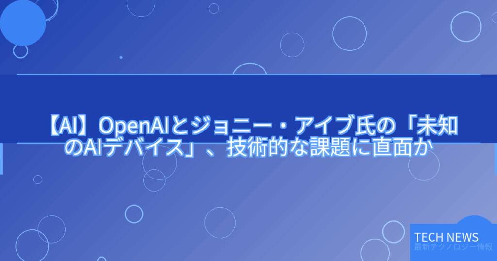 【AI】OpenAIとジョニー・アイブ氏の「未知のAIデバイス」、技術的な課題に直面か