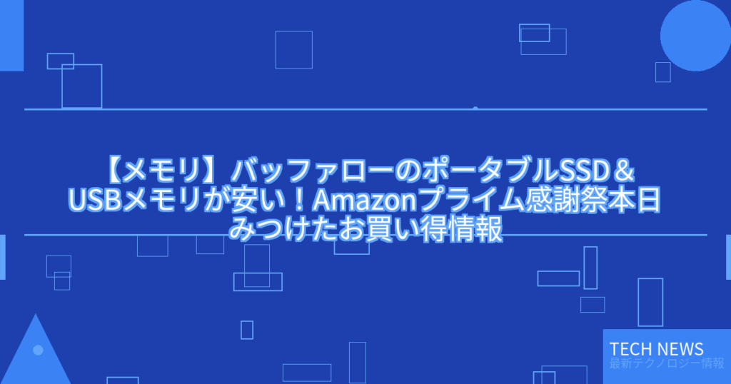 Amazon.co.jpは10月10日(金)までの期間限定で、プライム会員向けビッグセール「プライム感謝祭」を実施していますバッファローのストアでは、同社のポータブルSSDやUSBメモリがセールとなっています。 -