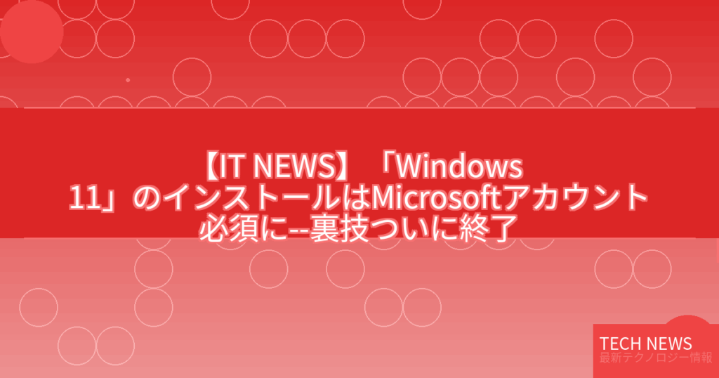 【IT NEWS】「Windows 11」のインストールはMicrosoftアカウント必須に–裏技ついに終了