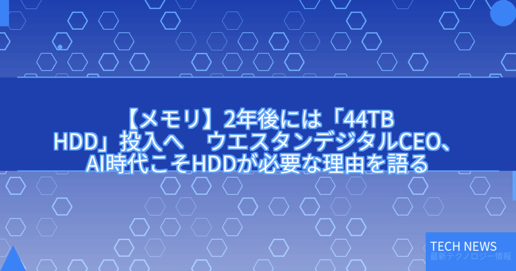 【メモリ】2年後には「44TB HDD」投入へ ウエスタンデジタルCEO、AI時代こそHDDが必要な理由を語る