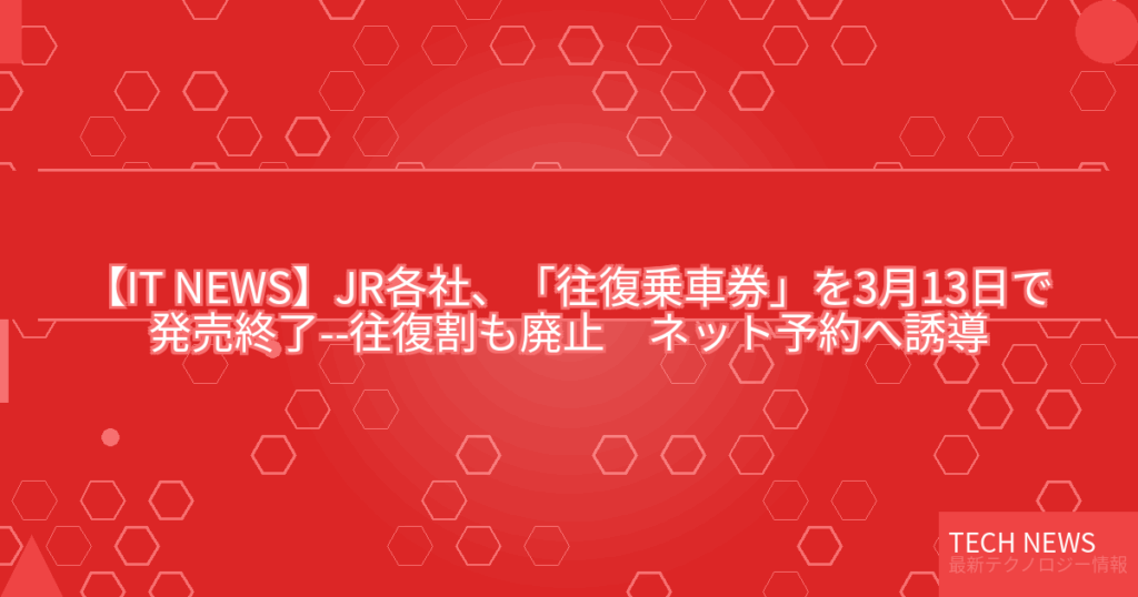 【IT NEWS】JR各社、「往復乗車券」を3月13日で発売終了–往復割も廃止 ネット予約へ誘導