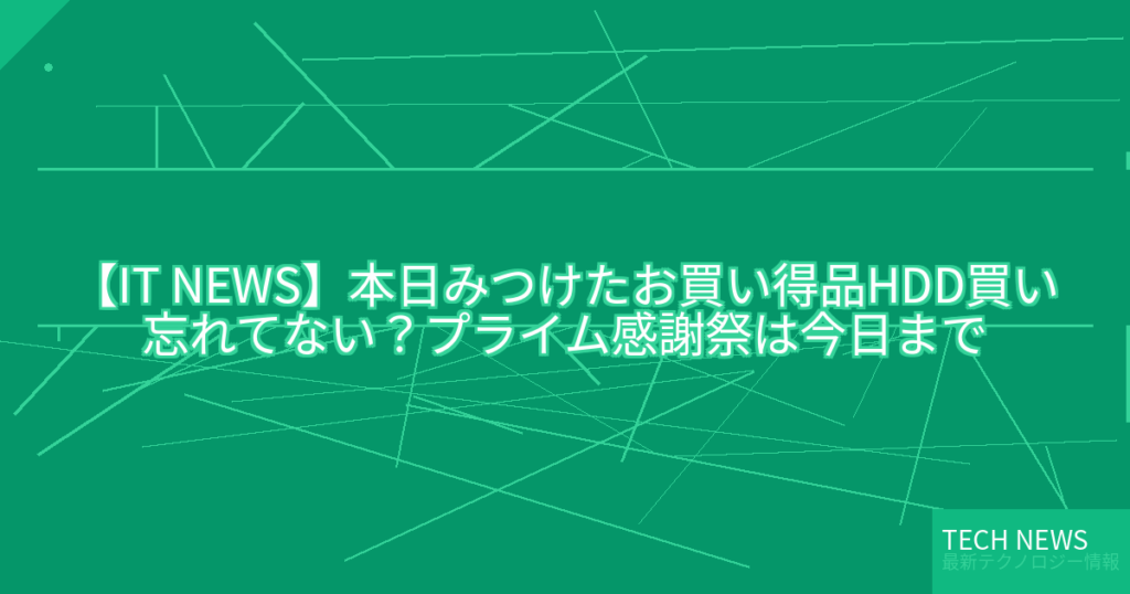【IT NEWS】本日みつけたお買い得品HDD買い忘れてない?プライム感謝祭は今日まで