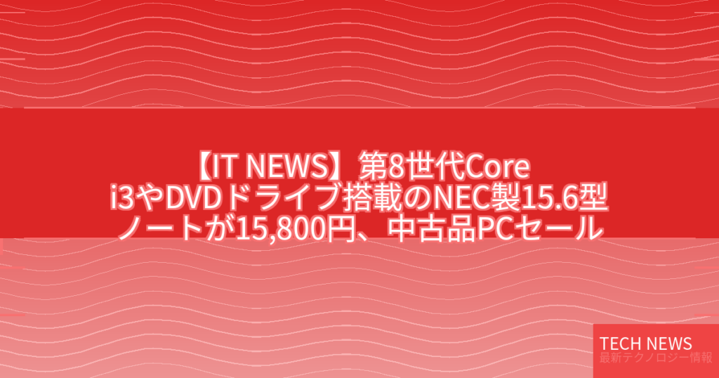 【IT NEWS】第8世代Core i3やDVDドライブ搭載のNEC製15.6型ノートが15,800円、中古品PCセール