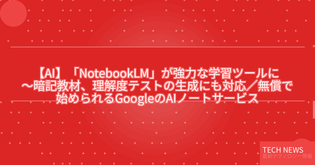 【AI】「NotebookLM」が強力な学習ツールに ~暗記教材、理解度テストの生成にも対応/無償で始められるGoogleのAIノートサービス