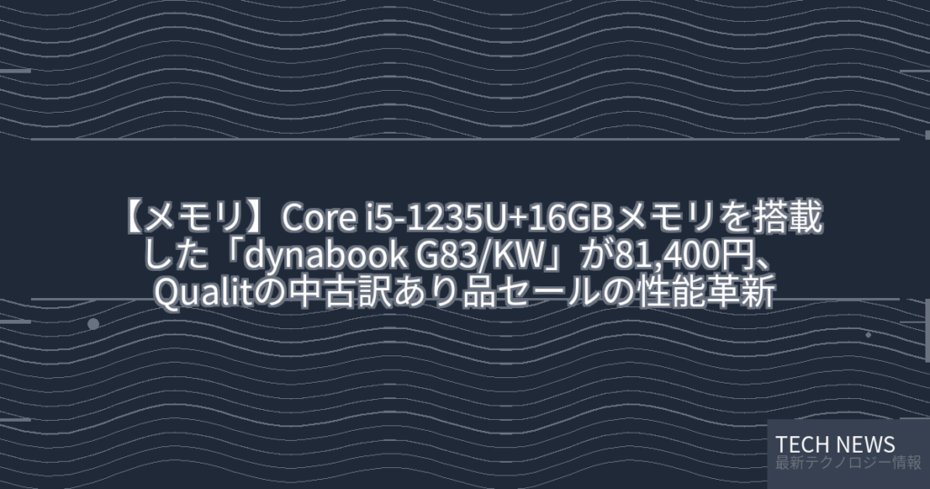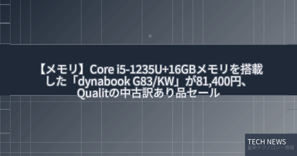 【メモリ】Core i5-1235U+16GBメモリを搭載した「dynabook G83/KW」が81,400円、Qualitの中古訳あり品セールの性能革新